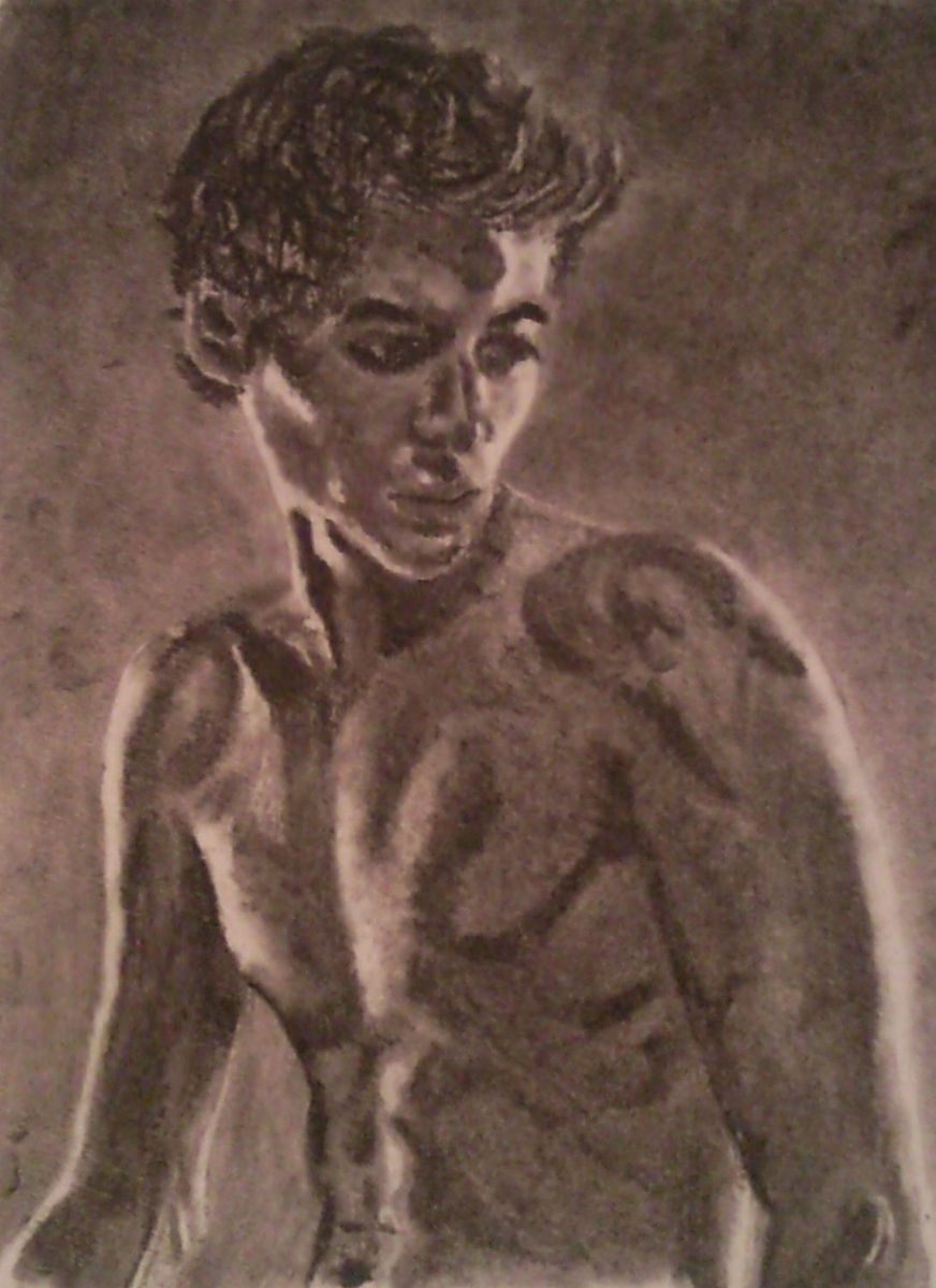 An earlier exploration in charcoal offers a beautiful simplicity in it's bolder contrasts offering depths in shading and highlighting.