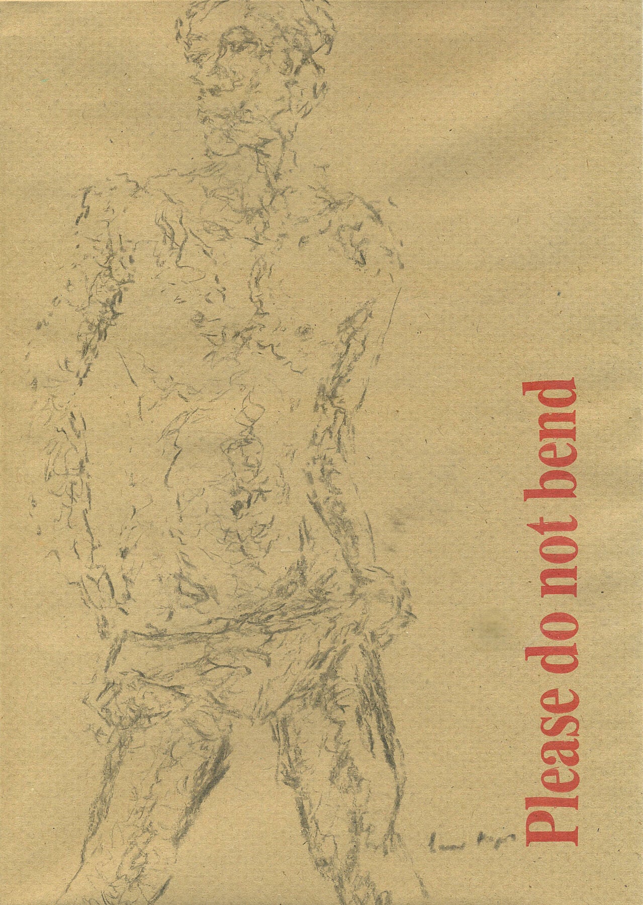 Drawn in Graphite on a manila envelope that reads 'Please do not bend' in red lettering this loose and free figurative work has very few lines speaking with great accuracy in their placement.